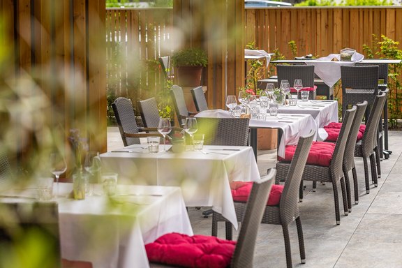 Bis zu 85 Gäste finden in unserem großen Saal Platz, aber auch der helle Wintergarten ist für kleinere Feiern bis 30 Personen sehr beliebt. Die Terrasse bietet Platz für bis zu 85 Personen, der Innenhof ist ideal für Agapen und Ihren Gästeempfang. Das neue Terrassenstüberl bietet auf 2 bis 4 Tischen Platz für 25 Personen und lockt mit eigenem Hochbereich.
